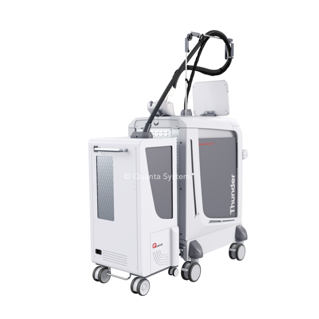 Qool-air – מערכת קירור עור בלעדית הזמינה עבור סדרת Thunder של Quanta System. היא תואמת למתאמי הידיות Skin Cryo ו-Skin Cryo TH. מערכת קומפקטית ועוצמתית זו מסוגלת גם לקרר אזורים נרחבים של העור לנוחות מרבית במהלך הטיפול, וניתנת לשליטה ישירה ממסך הלייזר. Qool-air היא הפתרון האידיאלי לשילוב בין כוח קירור העור וחיסכון מקסימלי במקום.